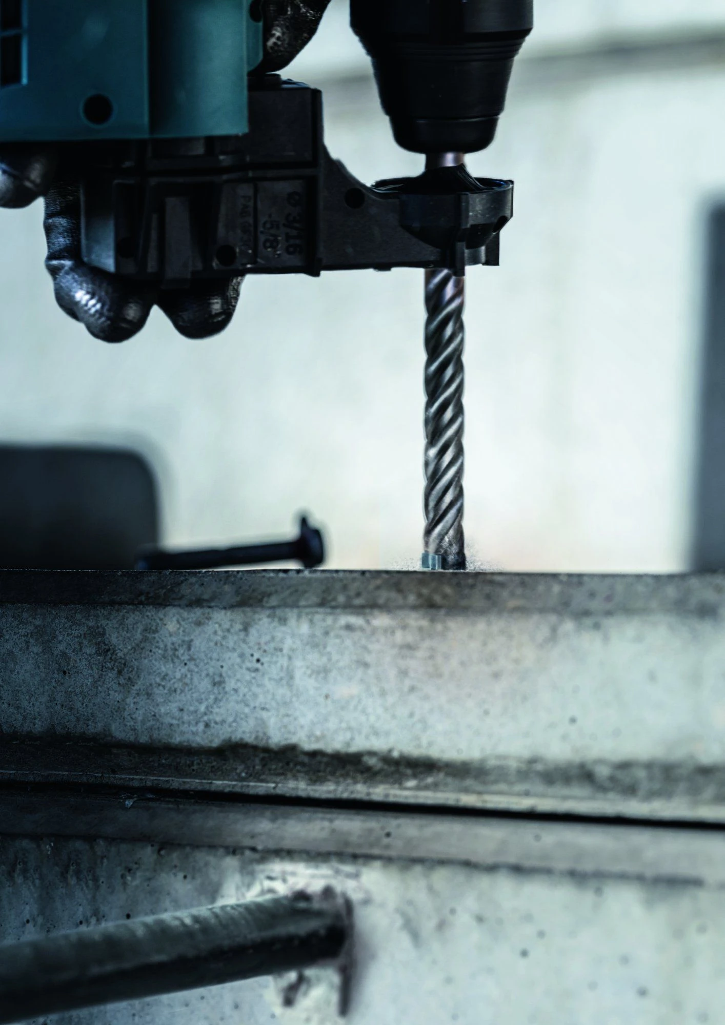 Boren door gewapend beton is een zware klus en het eist altijd zijn tol van je boren. Gewone boren met twee snijkanten komen vast te zitten in bewapening en zullen uiteindelijk breken. De hardmetalen punt van de Expert SDS plus-7X is een geavanceerd ontwerp met 4 snijkanten gemaakt uit één stuk van het sterkste metaal: het loopt niet vast en kent geen zwakte.