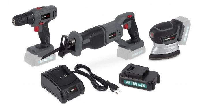 Powerplus One Fits All gereedschapsset POWEBSET20. In deze set is een 18V Schroefboormachine, Reciprozaag en Handpalmschuurmachine inbegrepen. Incl. 1500mAh accu en lader Met deze uitgebreide set accugereedschap van Powerplus One Fits All klaar je tal van klussen in en rond je huis. De accu is bovendien compatibel met alle gereedschap van Powerplus One Fits All. Waarvoor is deze accu-gereedschapset geschikt? Het gereedschap van Powerplus One Fits All is geschikt voor de lichtere klussen in en rond je huis. Ze zijn ideaal voor gebruikers die af en toe een schroefboor-, zaag of schuurklus willen uitvoeren. De voordelen van de POWEB1510 schroefboormachine: