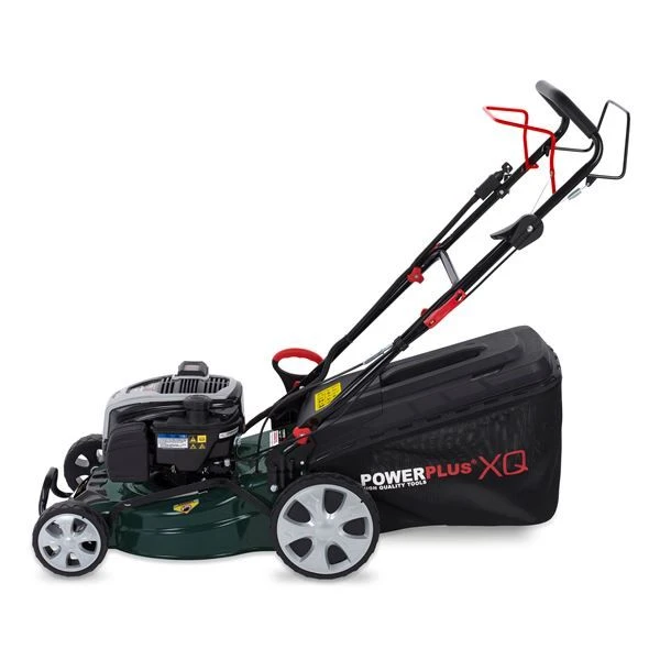De POWXQG7540 bezit een Briggs & Stratton 163 cc motor, ondergebracht onder een robuuste metalen behuizing. De stevige opvangzak kan tot 60 liter gras verzamelen, maar je kan evengoed ook kiezen voor mulchen. De maaibreedte is 46 cm en de maaihoogte kent maar liefst 7 verschillende standen tussen 24 tot 73 cm. De grasmaaier heeft ook een easy cleaning functie, waarmee je hem gemakkelijk kan reinigen en ontdoen van opgehoopt gras.